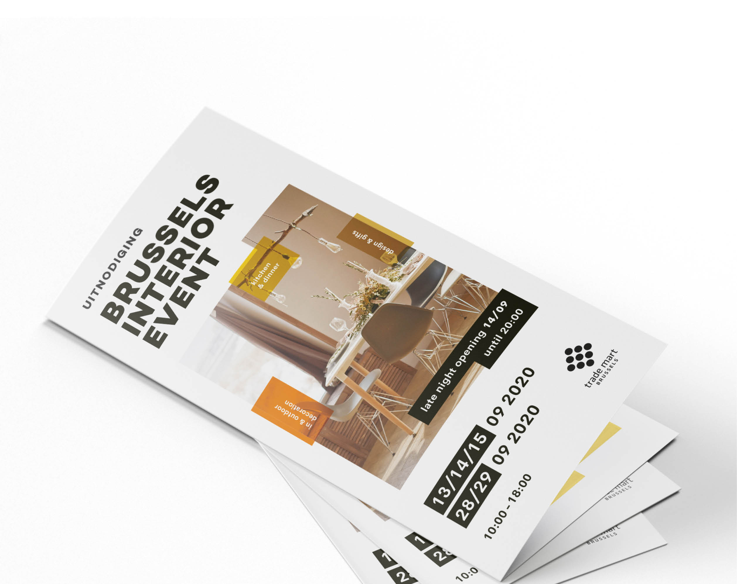 Trademart Brussels, het grootste inkoopcentrum voor retail professionals in Europa, organiseert 2 keer per jaar het Brussels Interior Event. Om het volledige aanbod in de kijker te plaatsen, hebben ze natuurlijk een mooie duidelijke brochure nodig! Daarvoor kunnen ze al enkele jaren op rij rekenen op onze hulp. Ook een creatieve uitnodiging én aantrekkelijke visuals op social media, konden niet ontbreken!