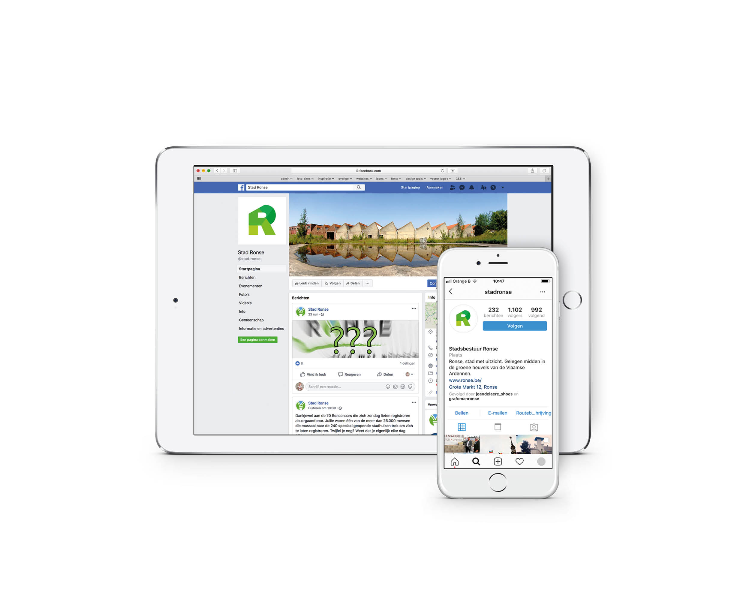 Naast het ontwerpen van alle “offline” communicatiemiddelen, mochten wij ook de website en social mediakanalen van stad Ronse onder handen nemen. Onze marketeers en webdesigners stonden de stad met raad bij over hoe hun site beter kon. Bovendien ontwierpen onze designers enkele prachtige visuals om hun social media een nieuw likje verf te geven!